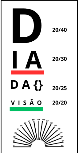 Teste de acuidade visual sem correção e com correção para melhor entendimento da necessidade do paciente.